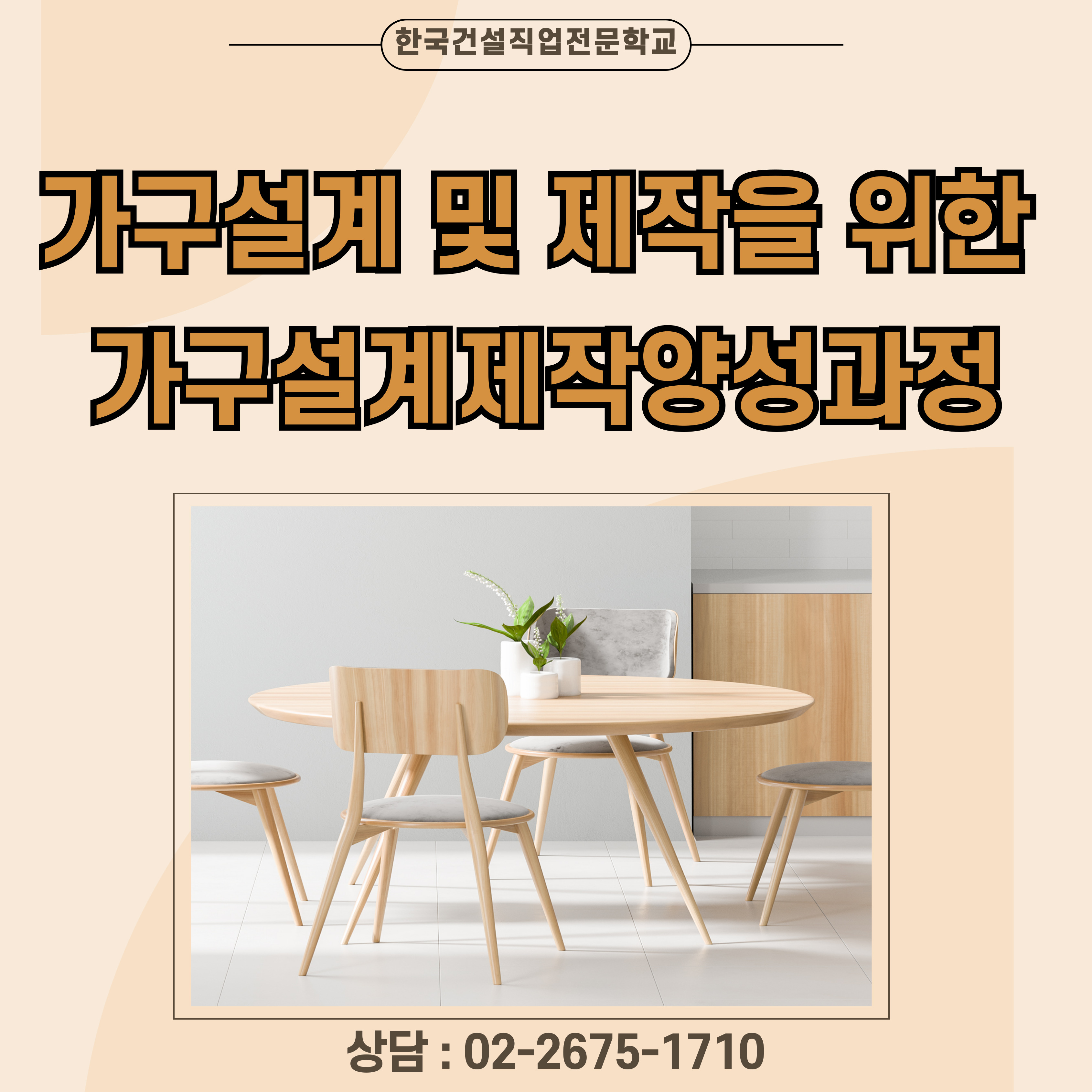 과정명 가구설계 및 제작을 위한 가구설계제작양성과정 교육기관 한국건설직업전문학교 교육목표 창의성을 바탕으로 목재 및 가구용 소재를 다양한 공구와 장비로 가공 조립하여 실용적이고 심미성 있는 가구를 만드는 업무에 종사할 수 있는 인력 양성을 목표로 한다. 교육내용 가구설계, 가구아이디어구체화, 가구모델링작업 가구렌더링작업, 가구제작 작업안전관리, 가구제작 작업준비, 가구재료수립, 짜임과이음작업, 가구가공작업 가구세공작업, 가구도장작업, 가구연마작업 등의 실무 과정이 포함되어 있습니다!! 교육기간 2026-02-20 ~ 2026-07-07 교육시간 주5일(월~금) 1일 8시간(09:30 ~ 18:00 / 중식별도 12:20~13:00) 모집인원 [모집 정원24명] 교육장소 서울시 금천구 두산로 28, 2층, B01[F] 한국건설직업전문학교 신청방법 고용노동부에서 지원하는 국민내일배움카드를 발급 받으셨다면 네이버에서 고용24 검색하셔서 직업능력개발 -> 훈련찾기 신청 -> 훈련기관명 : 한국건설직업전문학교 검색하시면 현재 모집 과정을 확인 후 수강신청까지 하실 수 있습니다. 이 과정에 관심이 있으시거나 공방 창업을 꿈꾸시는 분들도 고민하지 마시고 언제든 상담 문의 주시면 친절하게 알려드리겠습니다. |