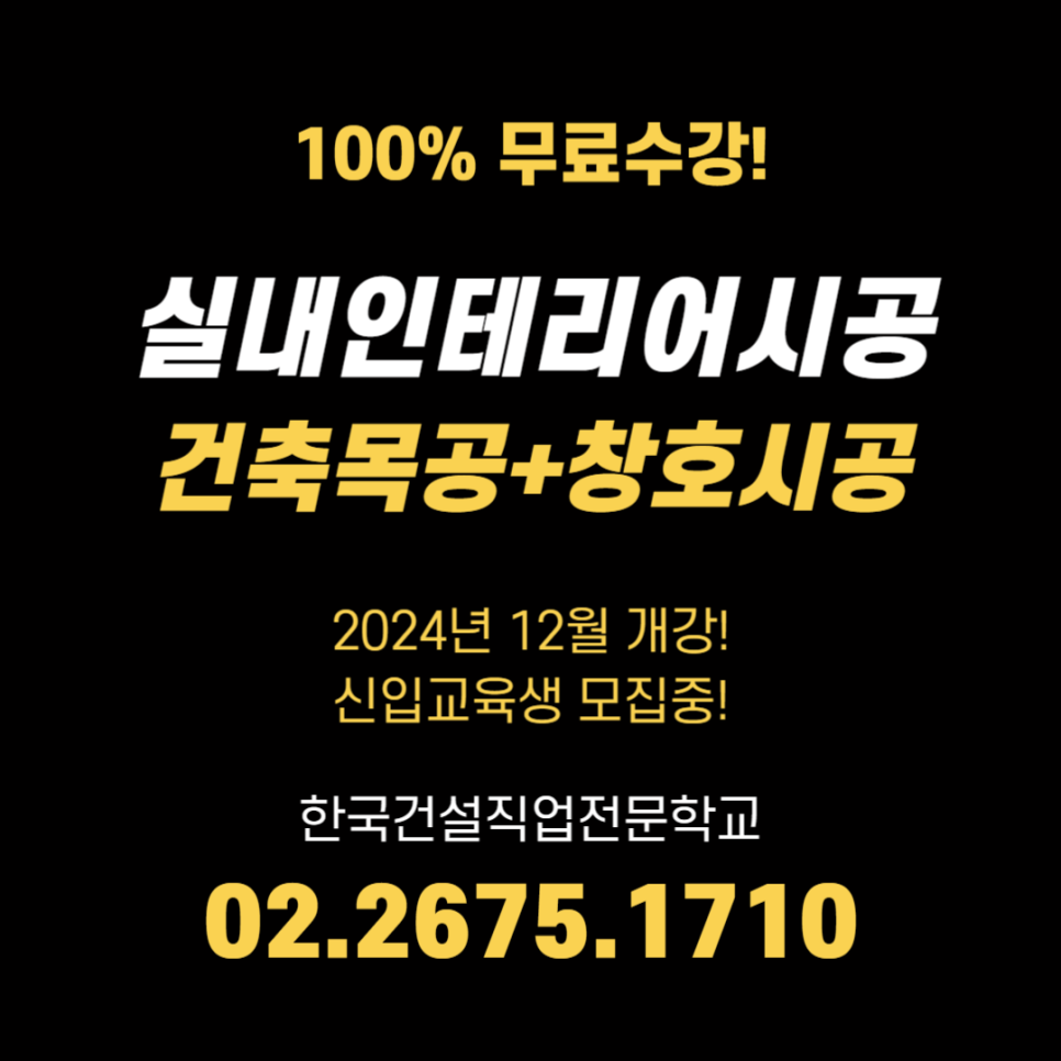 [공지] [12월 개강!] 실내인테리어시공실무 (건축목공+창호시공)2024.10.24 781 |
